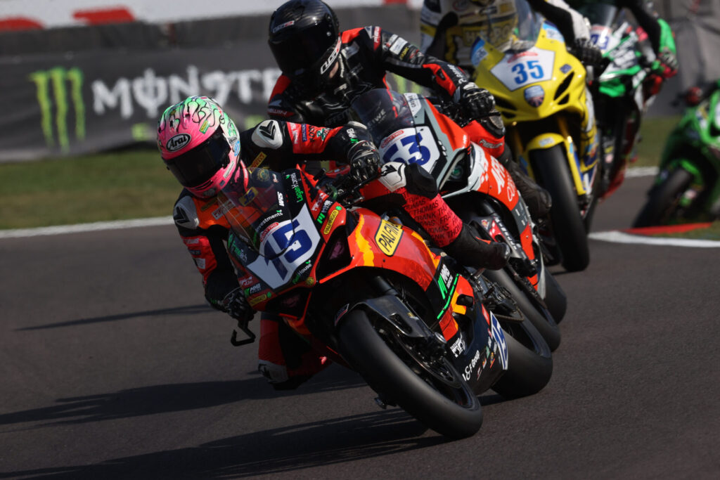It was a weekend of progress and perseverance for MMB Racing at Cadwell Park, where Harry Truelove delighted his home supporters with his best results of the season. The Lincolnshire rider impressed with 5th in the Sprint and fought for the podium in the Feature Race, finishing 4th by the narrowest of margins. Randalstown teammate Eugene McManus endured a difficult time after electrical toubles in qualifying, but battled through to secure points on Monday. The team now heads to Donington Park in September with confidence.